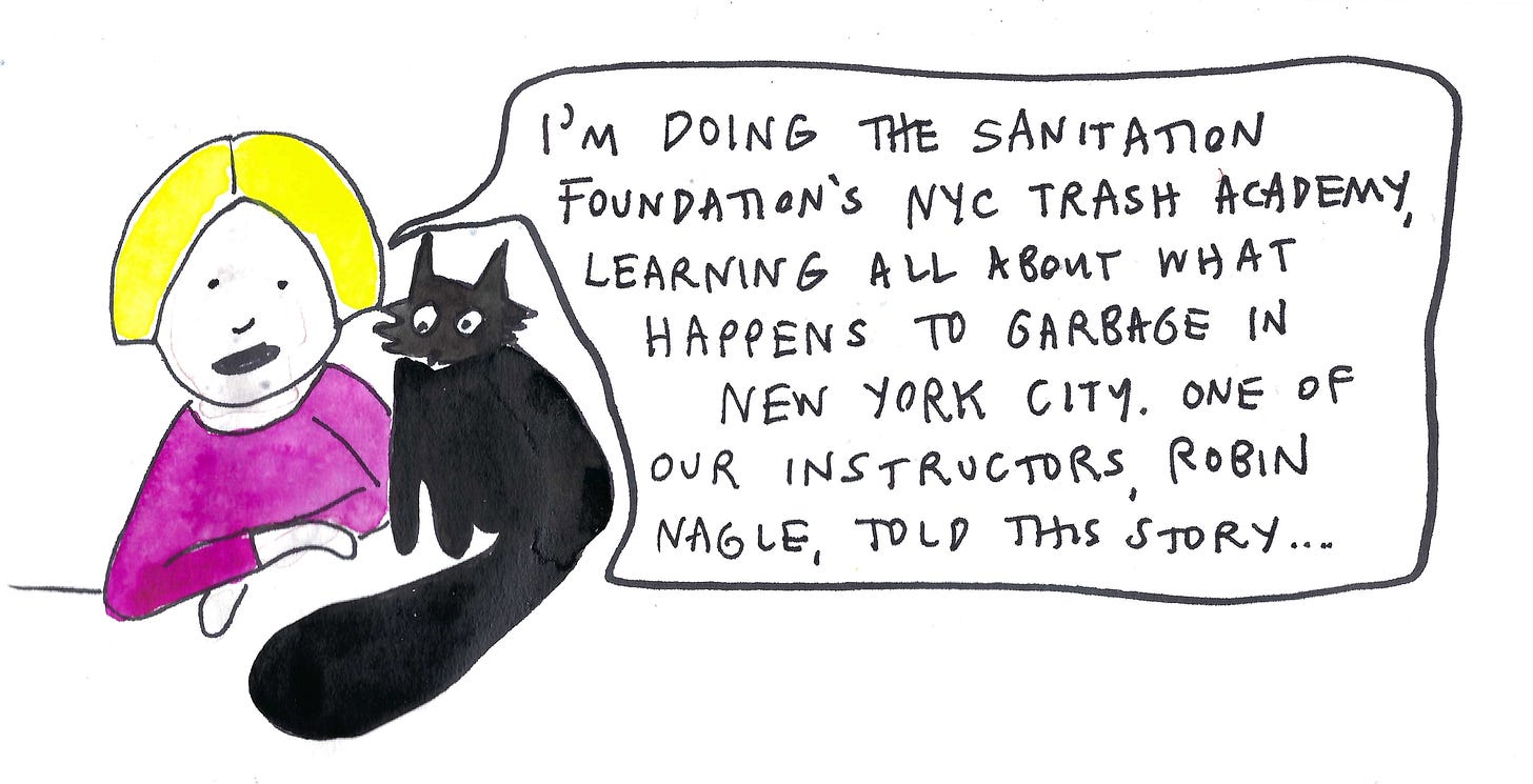 I love this course, and wanted to share some visual notes I took during one section of Dr. Robin Nagle’s (Anthropologist-in-Residence at the Department of Sanitation, NY, who is also featured on a great GARBAGE episode of the podcast Ologies) presentation.